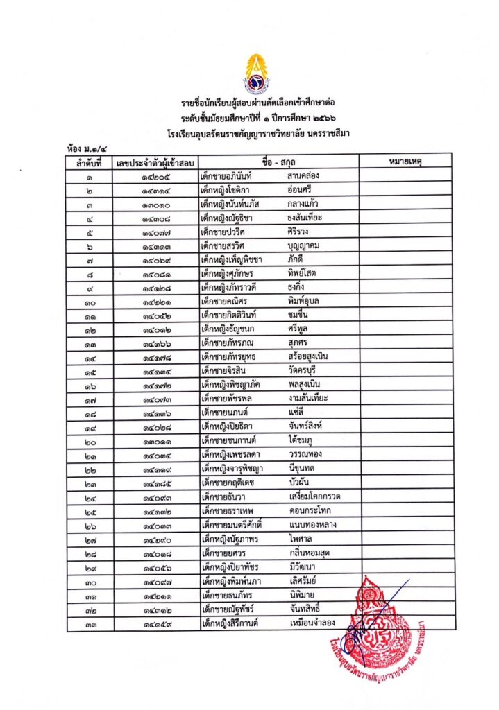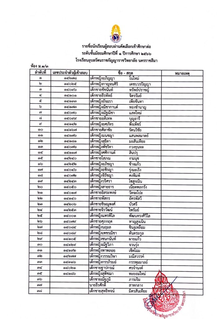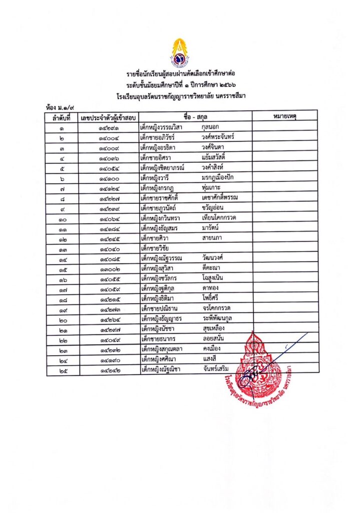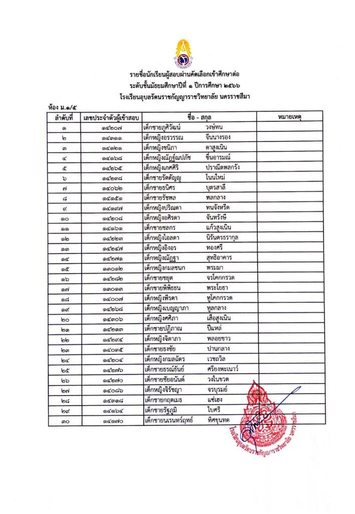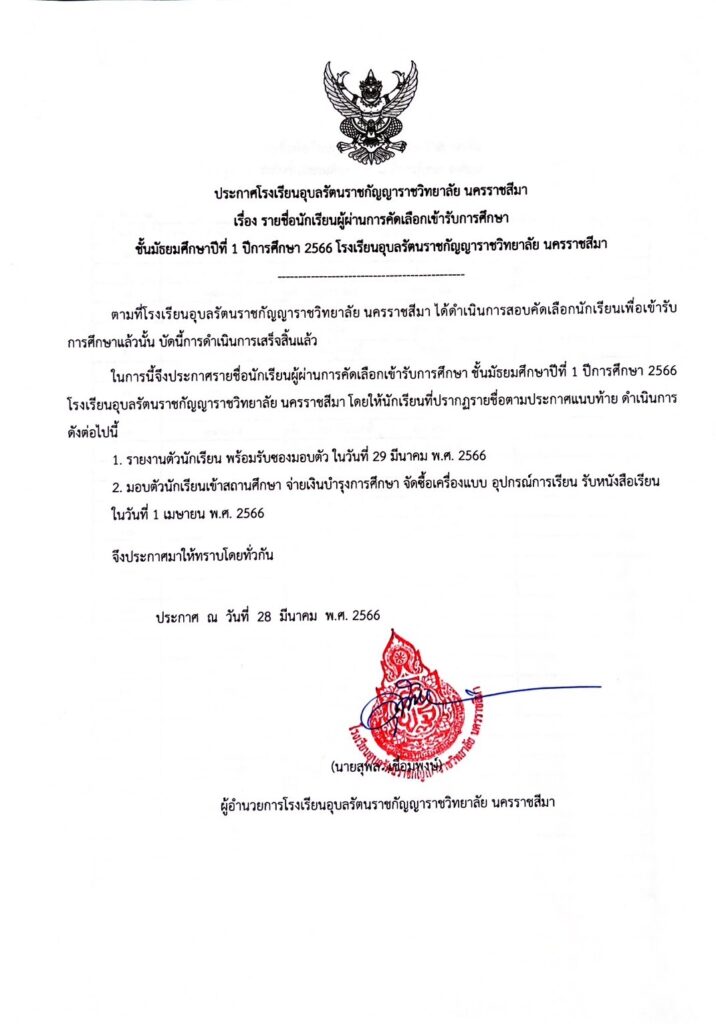 ประกาศรายชื่อผู้ผ่านการคัดเลือกเข้ารับการศึกษาในระดับชั้นมัธยมศึกษาปีที่ 1 29 มีนาคม 202329 มีนาคม 2023 admin Uncategorized