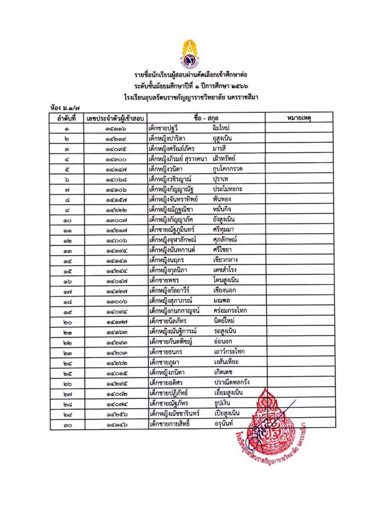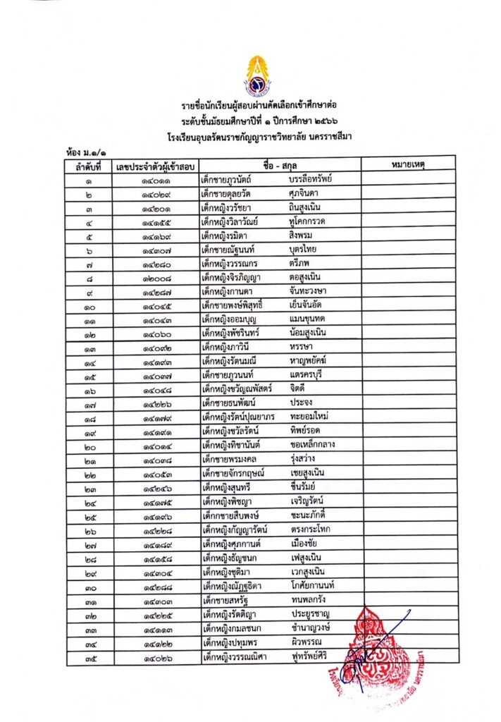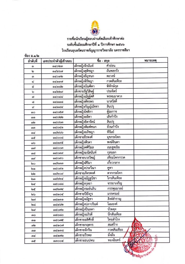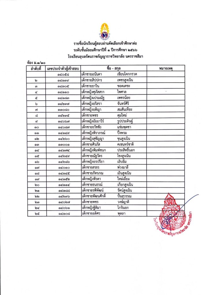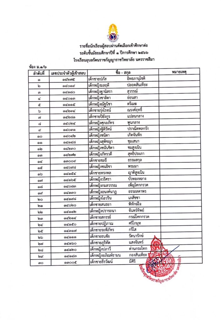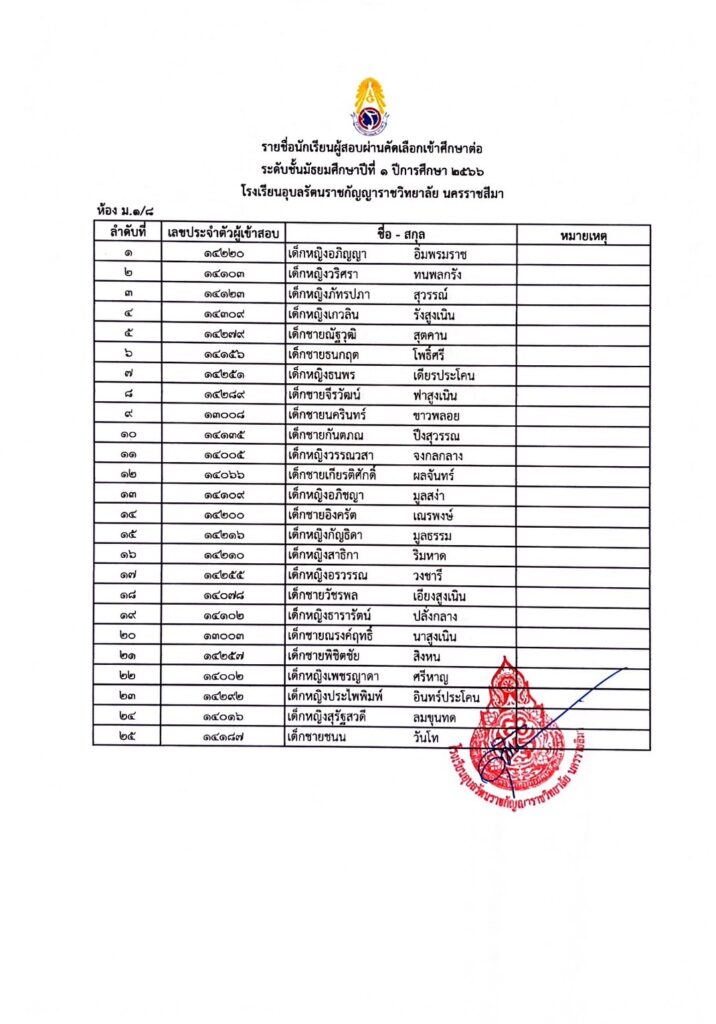 ประกาศรายชื่อผู้ผ่านการคัดเลือกเข้ารับการศึกษาในระดับชั้นมัธยมศึกษาปีที่ 1 29 มีนาคม 202329 มีนาคม 2023 admin Uncategorized