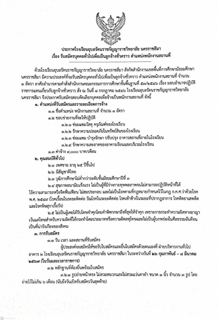 ประกาศ รับสมัครบุคคลทั่วไปเพื่อเป็นลูกจ้างชั่วคราว ตำแหน่ง พนักงานอาคารสถานที่ 23 กุมภาพันธ์ 202423 กุมภาพันธ์ 2024 admin Uncategorized ประกาศ รับสมัครบุคคลทั่วไปเพื่อเป็นลูกจ้างชั่วคราว ตำแหน่ง พนักงานอาคารสถานที่ สมัครด้วยตนเอง ระหว่างวันที่ 26 กุมภาพันธ์ – 8 มีนาคม 2567 ในวันและเวลาราชการ ที่ฝ่ายบริหารงานทั่วไป อาคาร 2
