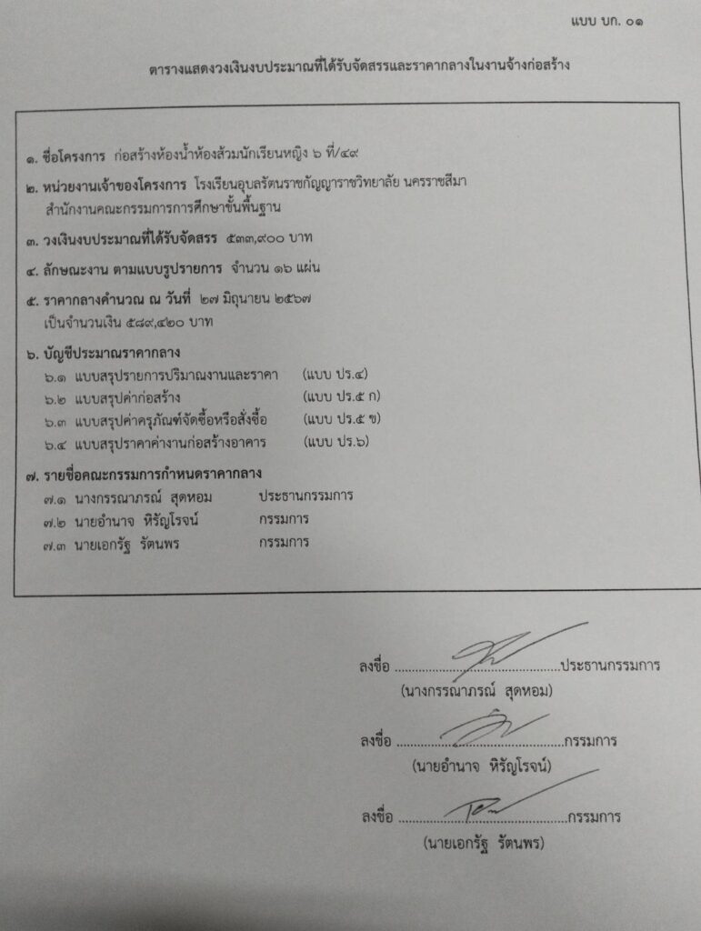 ประกวดราคาจ้างก่อสร้างห้องน้ำห้องส้วมนักเรียนหญิง 6 ที่/49 (ราคากลาง)